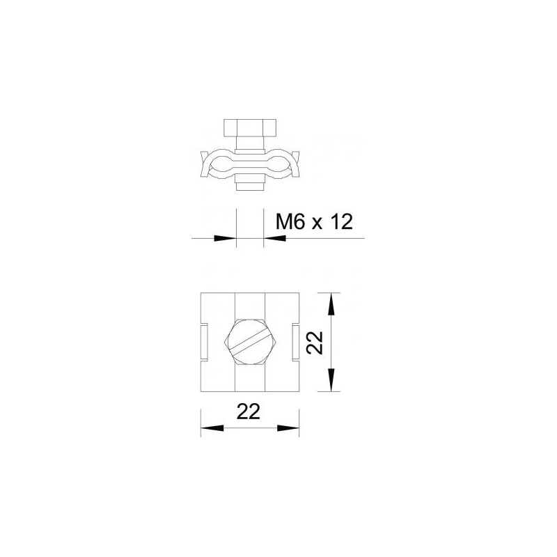Vielinio lyno gnybtai plieno vielos įtempimo lynams tvirtinti. Varžtas M6x12.