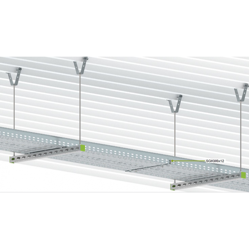 Tvirtinimas prie konstrukcijos, lubų. Kabelių trasų, šviestuvų, sekcijų pakabinimas į tipinius trapecijos lakštus.