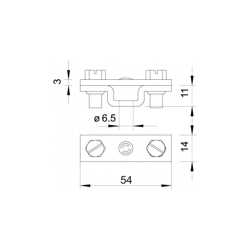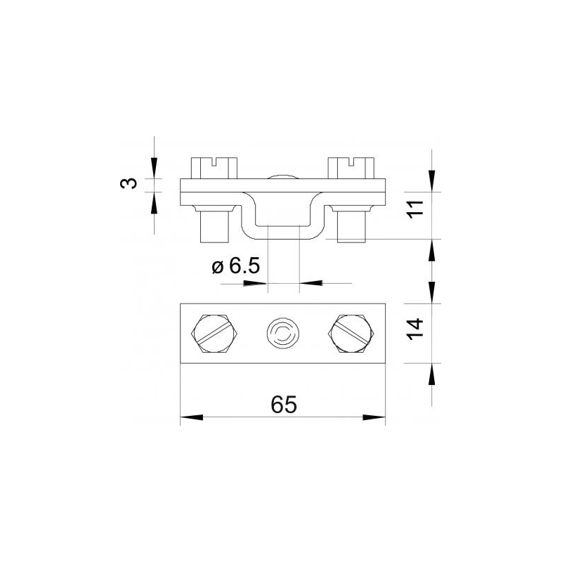 Tarpiklis juostiniam laidininkui, su Ø 6,5 tvirtinimo skyle