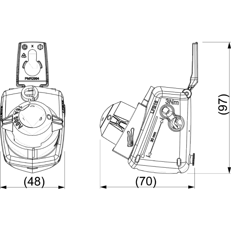 LFB16-R saugikline su 4 mm² Cu maitinimo laidu. Galima prijungti 1.5-6 mm² Cu šviestuvo laida. Maks. saugiklis 16A. Su 6A saugikliu.
