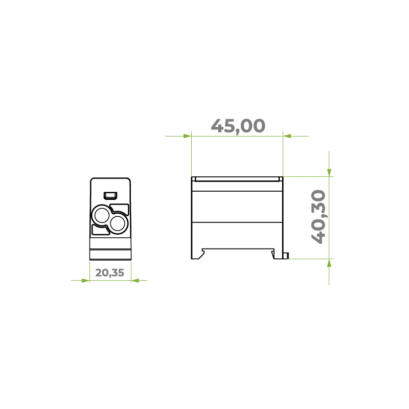 Behalogenis, savaime užgesinantis plastikinis korpusas padidina saugumą. Identiški 25 mm² ir 35 mm² variantų dizainai leidžia lengvai juos sudėti ir derinti.