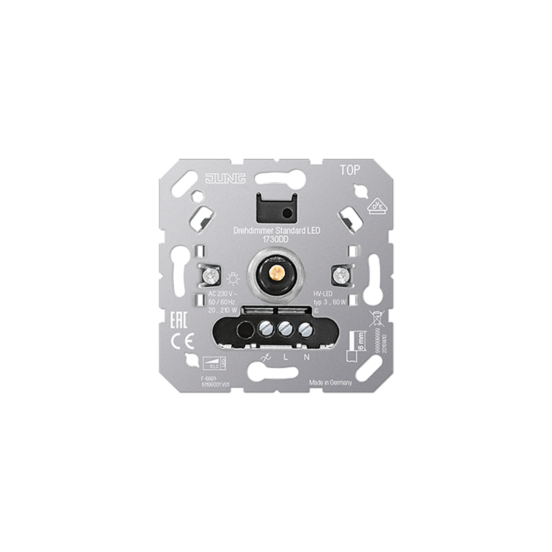 JUNG 224LEDUDD šviesos reguliatorius Kodas: 263918 IšparduotaUniversalusis sukamasis LED šviesos stiprumo reguliatorius