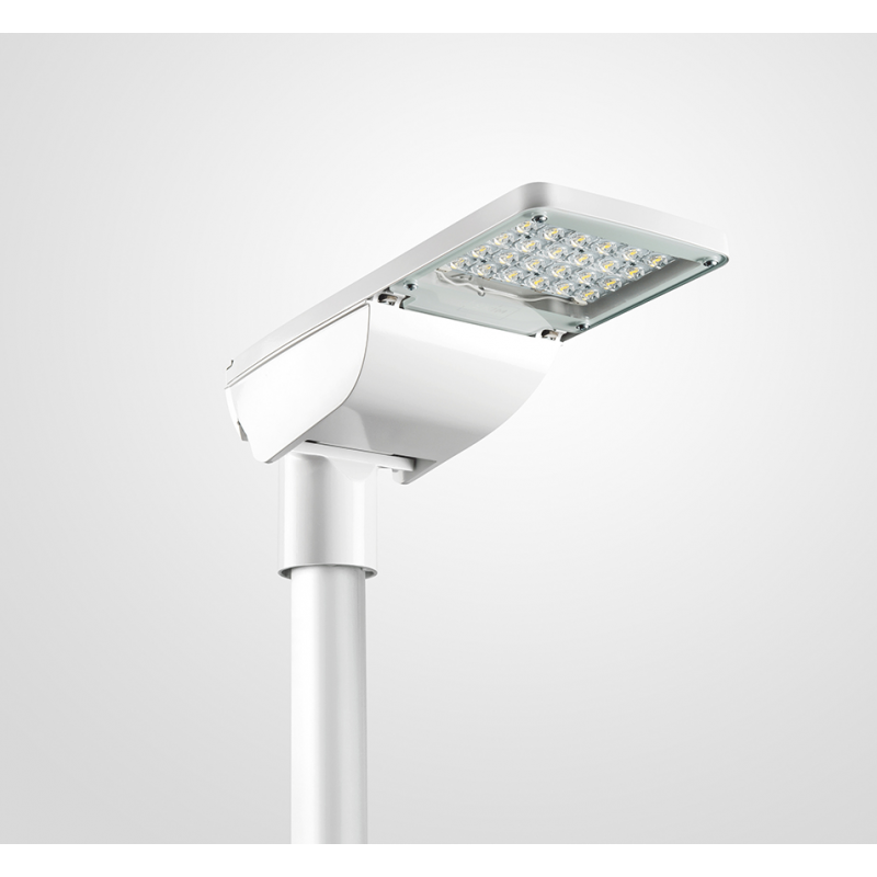 IRIS 0 – modernus ir inovatyvus sprendimas gatvių bei kitų lauko erdvių apšvietimui, atitinkantis aukščiausius ES standartus ir turintis visus reikalingus sertifikatus. Šis šviestuvas pasižymi didelio efektyvumo LED technologija su plačiu optikų pasirinkimu, leidžiančiu užtikrinti precizišką ir tolygų apšvietimą. Tvirtas aliuminio korpusas, kurio korozijos atsparumo klasė yra C4 (C5 pagal užsakymą), bei ≥ 100 000 valandų nominalus šviestuvo tarnavimo laikas (L95 B10) garantuoja ilgaamžiškumą net ir esant sudėtingomis aplinkos sąlygomis. Šviestuvo atidarymas be įrankių užtikrina greitą ir patogią priežiūrą, o platus galios diapazonas – nuo 10 W iki 70 W – leidžia pritaikyti apšvietimo sprendimus įvairiems poreikiams. IRIS 0 – idealus pasirinkimas tiems, kurie vertina energijos taupymą, tvarumą ir vizualų apšvietimo komfortą.