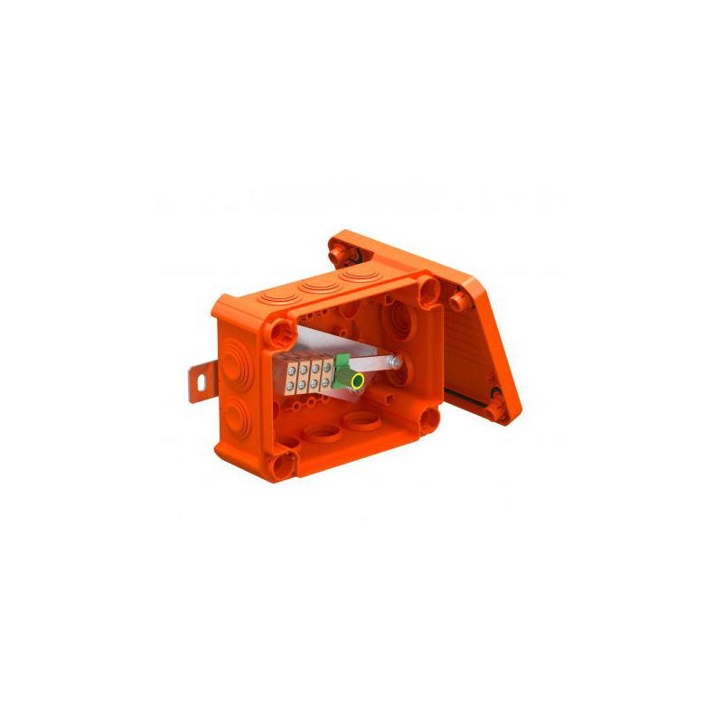 Kabelių paskirstymo dėžutės su keraminiais viengubais gnybtais ir minkštais sandarikliais. Pakankamas plotas laidams dėl įstrižai išdėstytos jungties su iš anksto sumontuotais, aukštai temperatūrai atspariais keraminiais gnybtais. Žaliai ir geltonai paženklinti apsauginio laido gnybtai. Tvirtinimas prie lengvai pasiekiamų išorinių laikiklių. Patvirtinta kabelių sistemoms su elektros funkcijų priežiūra pagal DIN 4102 12 dalį, E30, E60 ir E90 klasėms. Keramikiniai gnybtai, patikrinti pagal DIN EN 60998-2-1:2004.