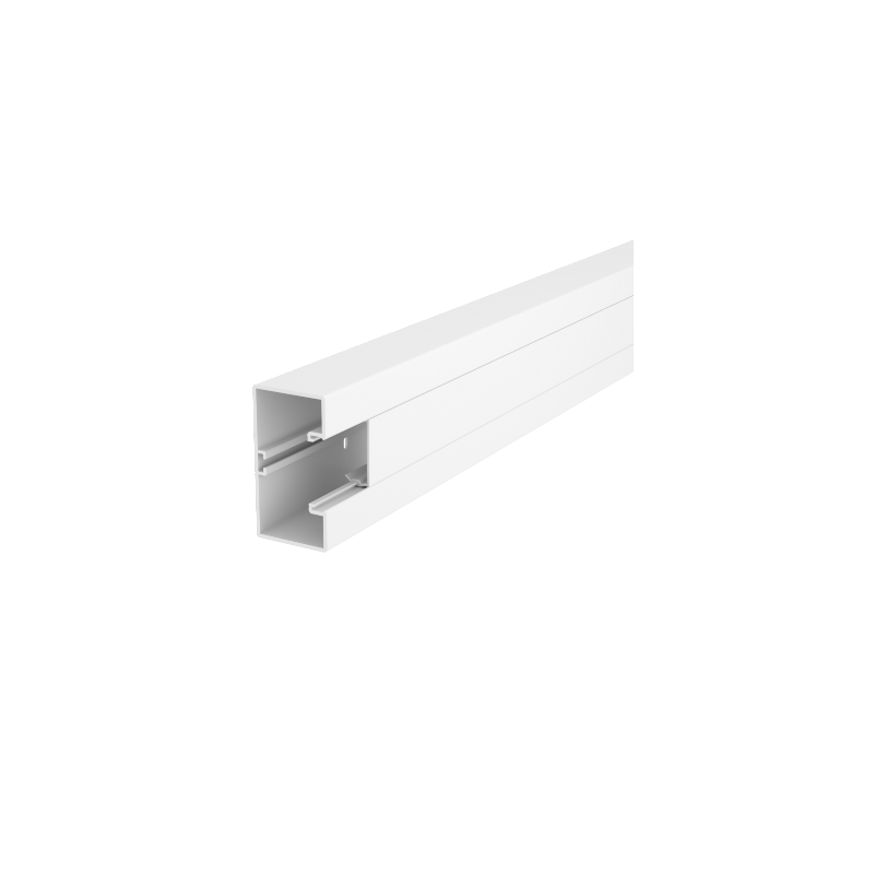 Listwa z pokrywą Rapid 45. Górna i dolna część kanału z perforacją podstawy, przeznaczona do montażu bezpośrednio na ścianie.