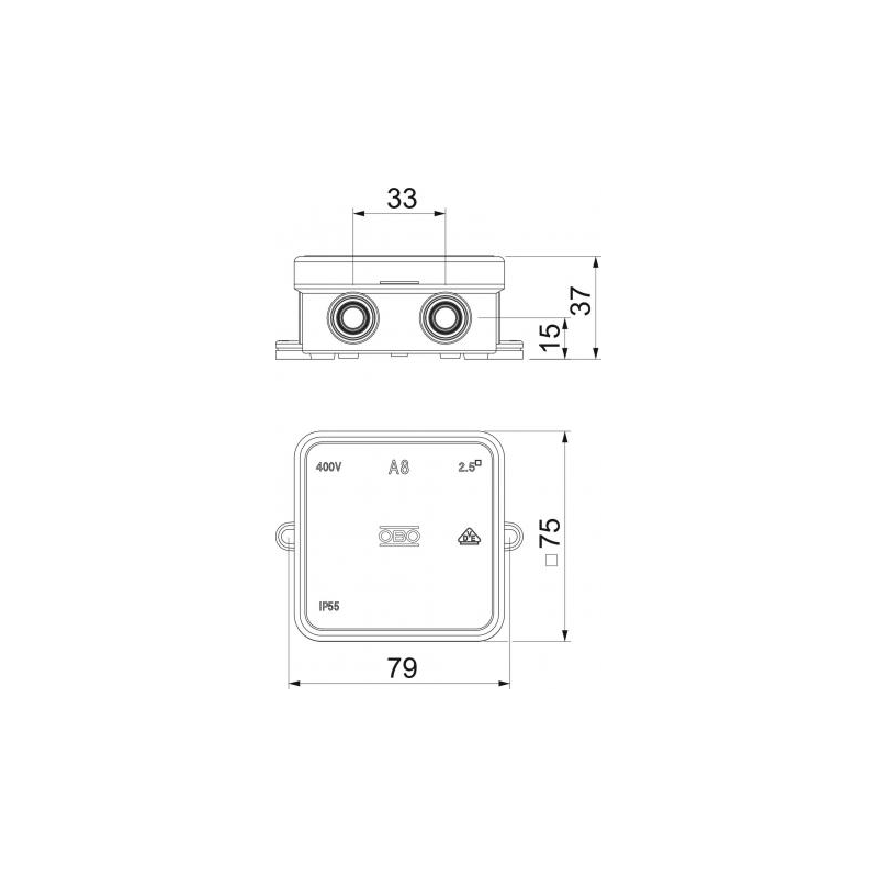 7 wejścia, dla kabla o średnicy 5-14 mm. Przekrój 2,5 mm². 400 V.